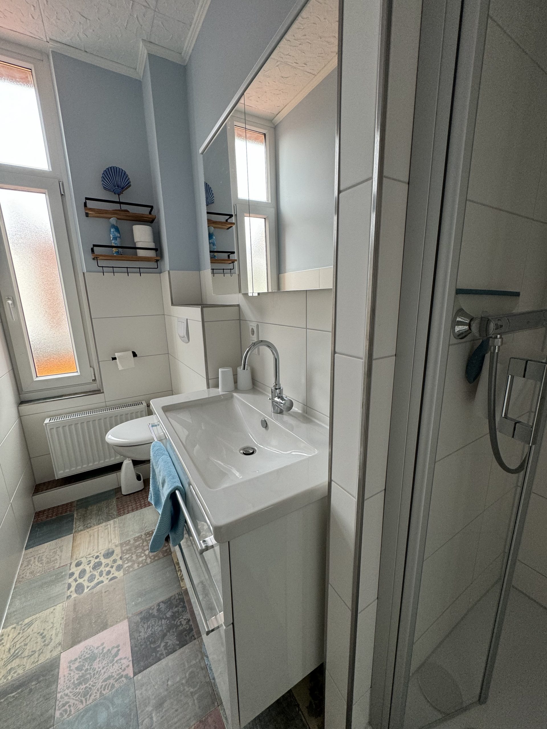 mit WC, Waschbecken und Föhn